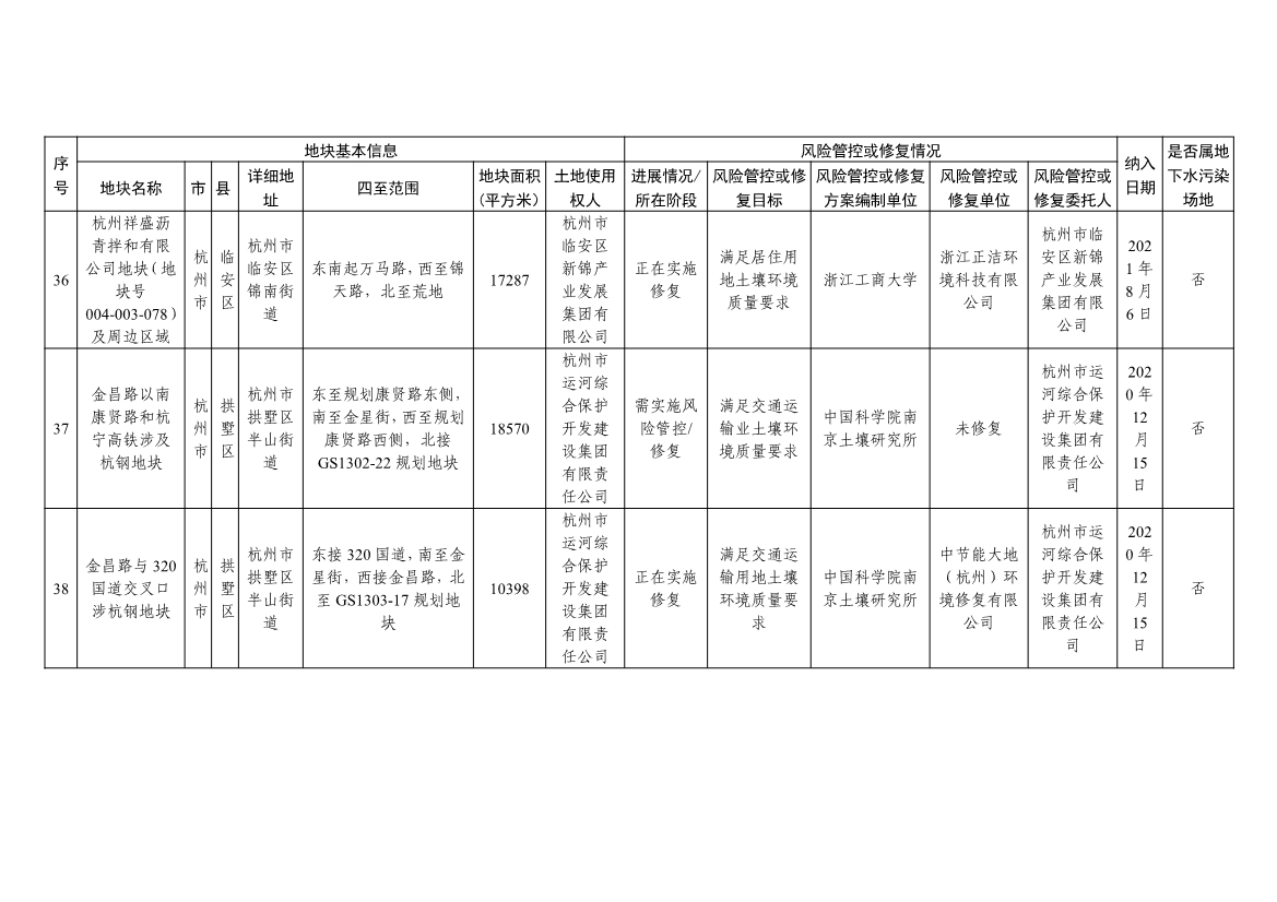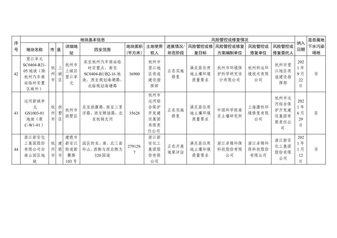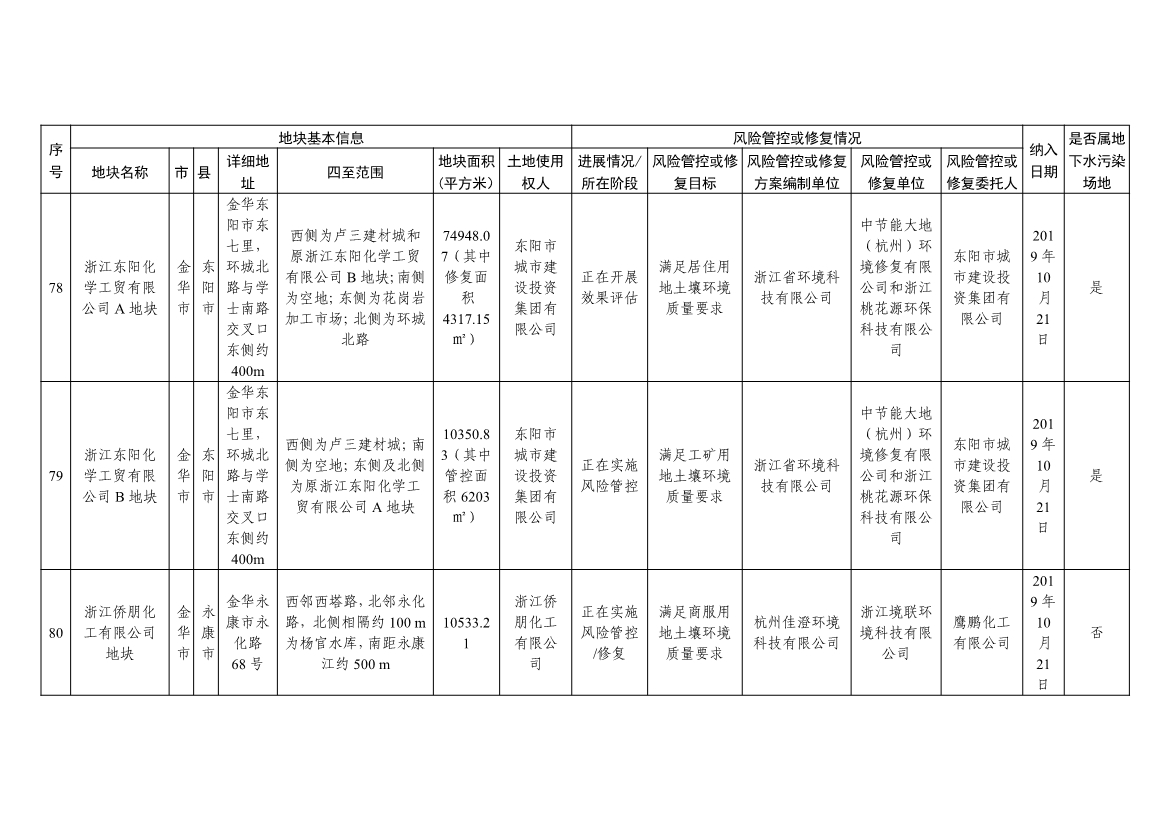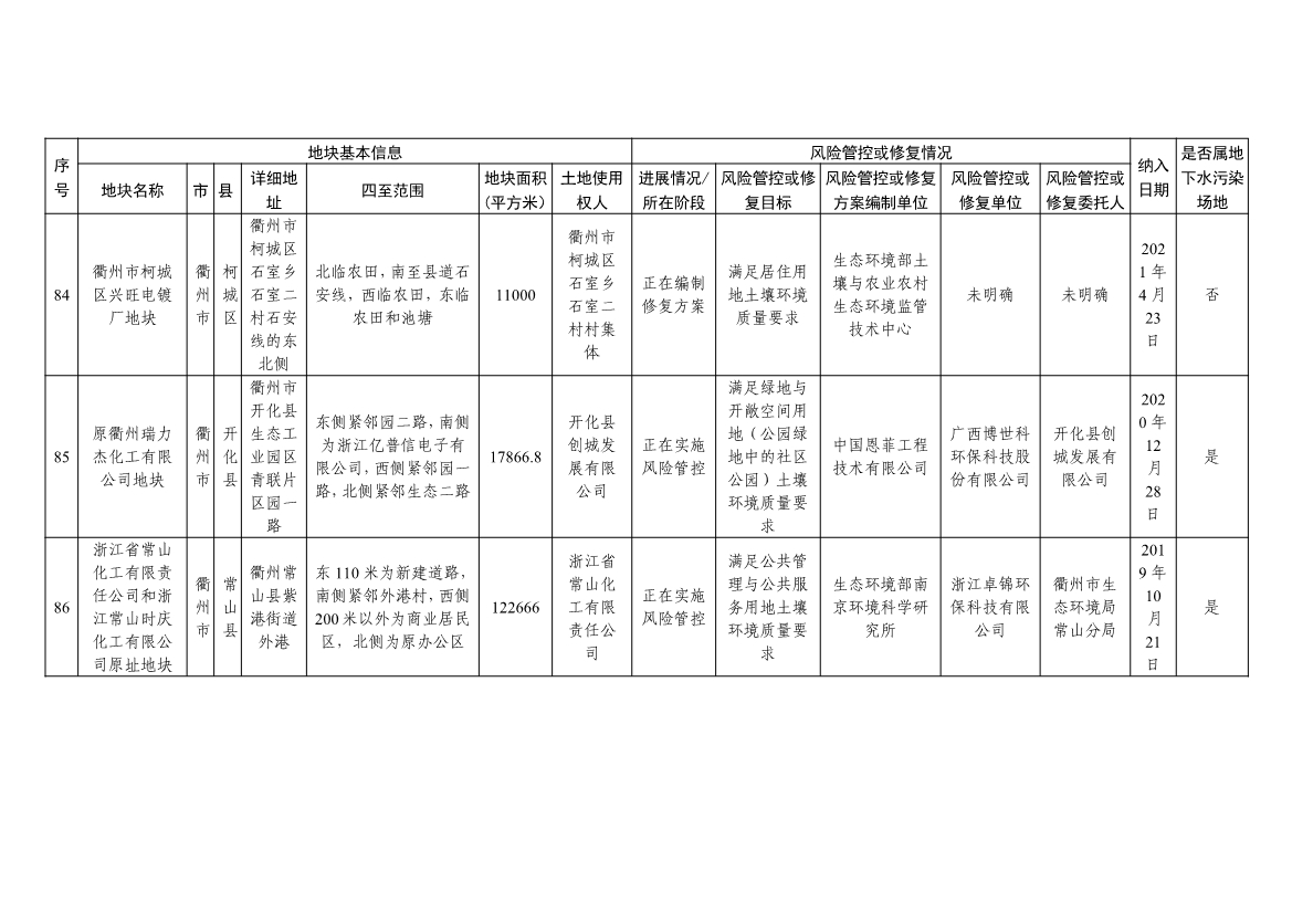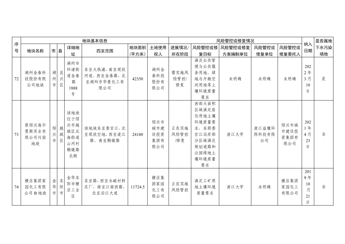 浙江省建设用地土壤污染风险管控和修复名录及移出清单(4.24更新)