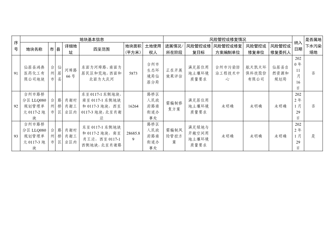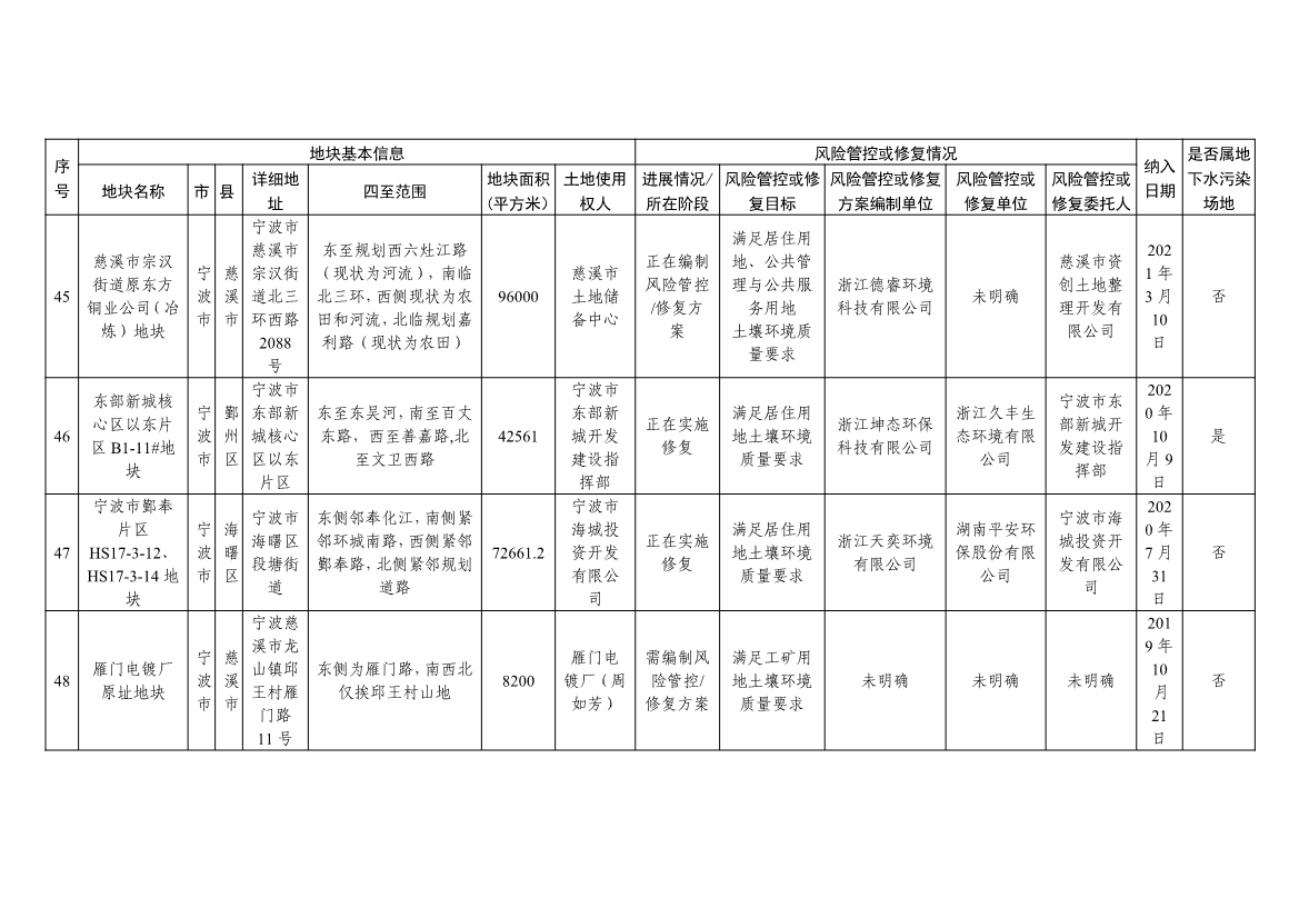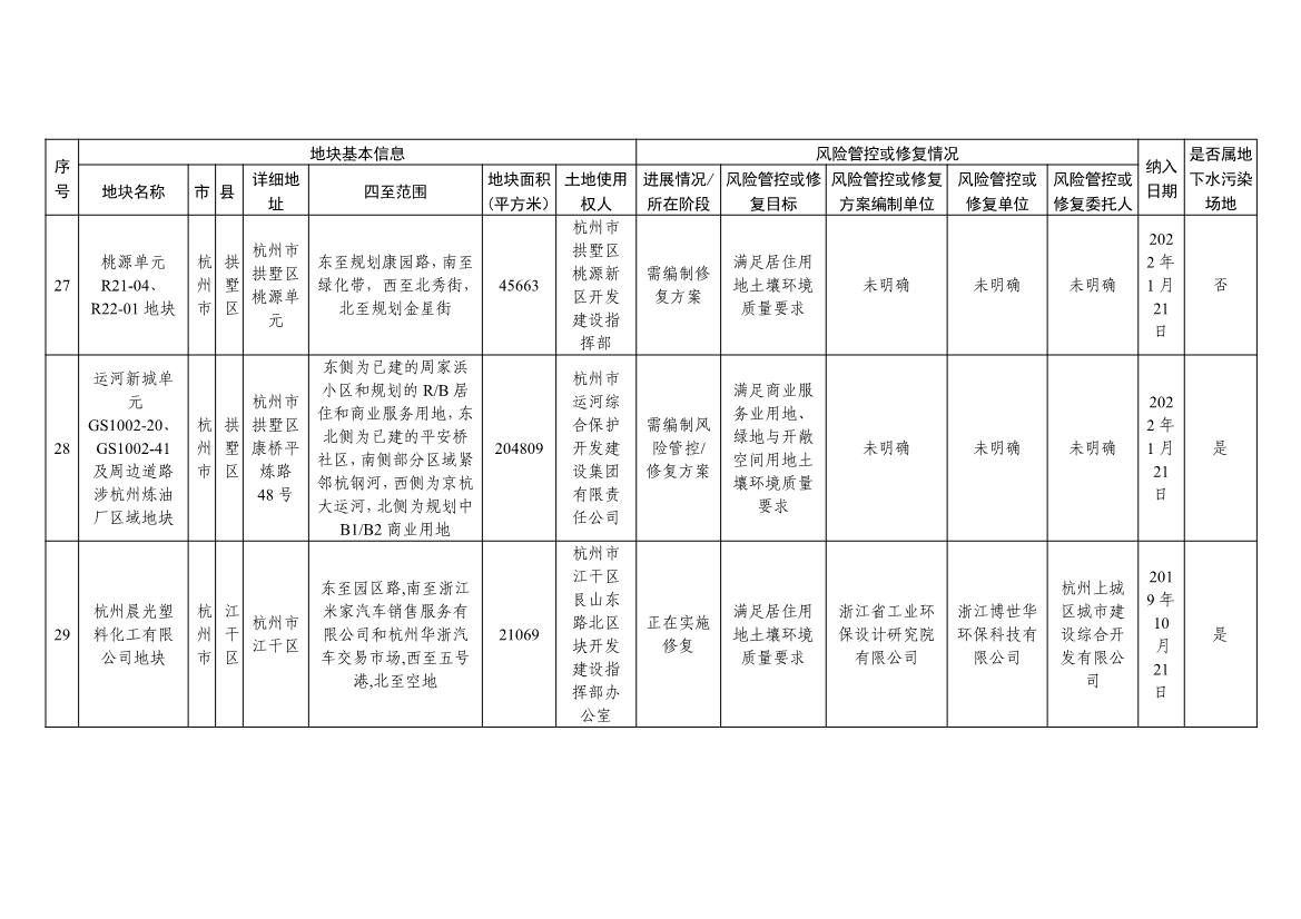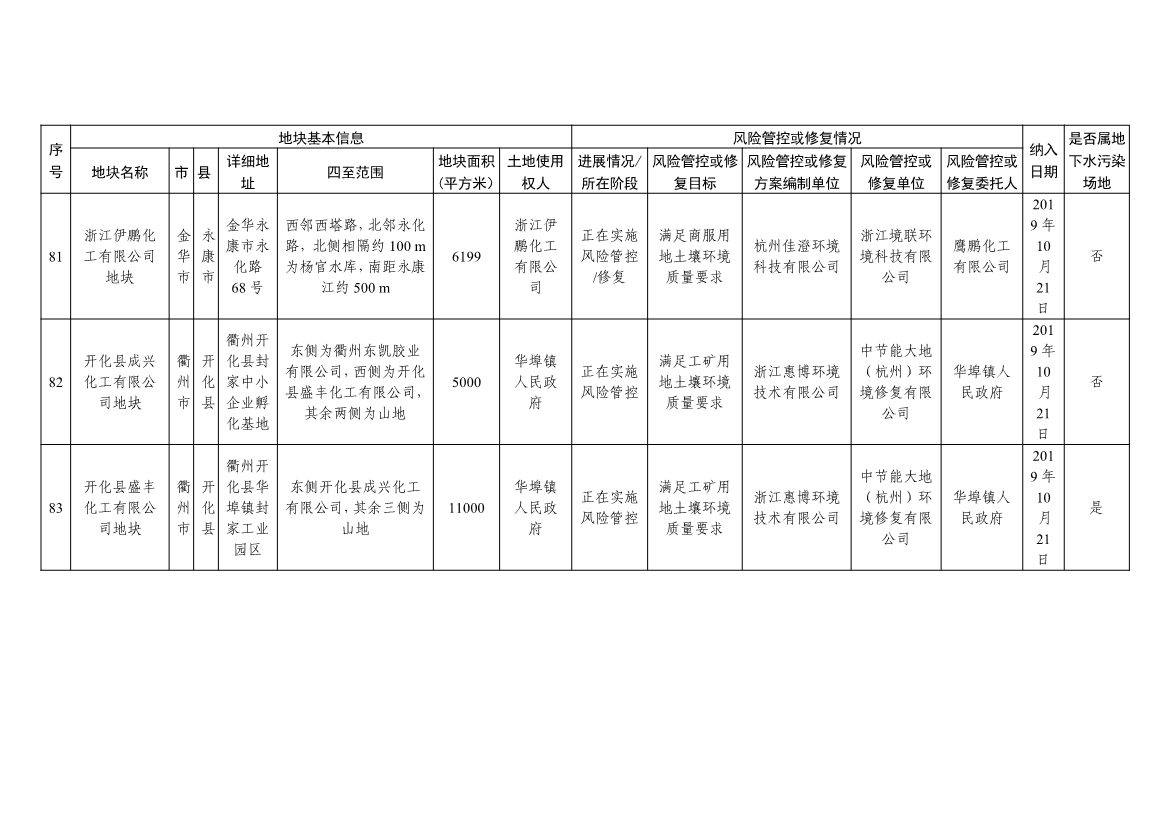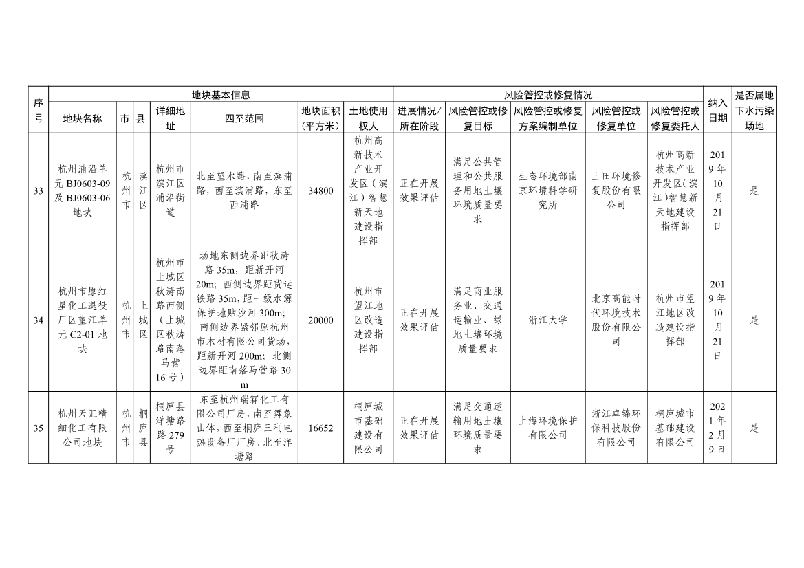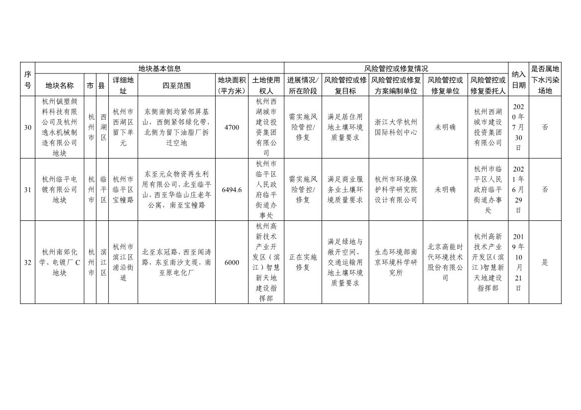 浙江省建设用地土壤污染风险管控和修复名录及移出清单(4.24更新)